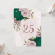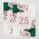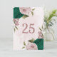 Beautiful romantic table number card featuring emerald green and pink flowers and some leaves .
