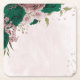 emerald green pink flowers wedding square paper coaster