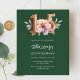 A modern, stylish and glamourous invitation for a Quinceañera. An emerald green background, decorated with a pink and peach watercolored flower. The name is written with a modern green coloured hand lettered style script. Personalise and add your party details. Number 15 is written with a balloon style font, script.