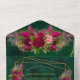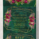 Emerald Green Pink Peony Roses Wedding All In One Invitation