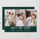 QR Code - Modern and Elegant Landscape Horizontal Three (3) Photo Save the Date Wedding with hand lettered script typography. The save the date invitation magnet includes script typography and chic and simple design that you can add your customised engagement photograph picture to.