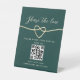 Make it easy for your guests to share their favourite moments! This elegant emerald green wedding sign features a modern QR code, romantic gold rope heart, and classic calligraphy. Guests can scan with their smartphones to upload photos directly.