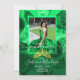 Invite your Quinceañera guests with an emerald green and gold gemstone tiara invitation. Easily upload your verde quinceanera dress photo over a beautiful green rose background. This modern gradient emerald to jade Quinceanera invitation has beautifully matching envelopes, return-address labels, and thank you cards. A popular green design with a glittery gold number 15 on the back is perfect for your Mis Quince birthday celebration.