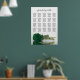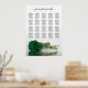 This elegant 20 table wedding seating chart features a beautiful emerald green coloured rose reflecting in water with waves and ripples. The title reads "please find your table" in lacy script calligraphy. There is space for the names of the couple and wedding date. This chart has table assignments for 200 guests - 10 people per table.