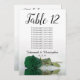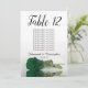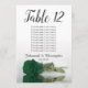 These beautiful table number cards will make it easy for your guests to find their seats at your wedding reception. They feature a simple yet elegant design with script calligraphy lettering and a single long-stemmed emerald green coloured rose lying on its side reflecting in water. The card includes a seating chart with 10 names. There is also space for the couple's names and wedding date. This card is available in a variety of sizes and is larger than our standard table number cards.