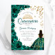 Emerald Green Roses Floral Gold White Quinceanera Invitation