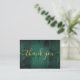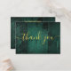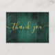 An elegant emerald green rustic barn wood boho wedding thank you reception card, personalised with a special message and the bride and groom's names in chic gold typography. Designed by Thisisnotme©