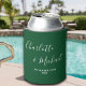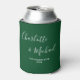 Make your wedding day even more memorable with these emerald green script minimalist wedding can coolers personalised with your names and wedding date! This elegant accent adds a touch of class and personalisation to your big day.