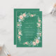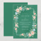 A deep emerald green backdrop provides a rich foundation for this delicate watercolor design. Soft peach roses and tiny light blue blossoms are woven together with lush teal and sage greenery. This artistic botanical arrangement evokes a serene and romantic mood, perfect for an elegant event. The painterly details highlight the soft textures of the petals and leaves.