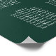 Featuring signature style names, this elegant emerald green and white seating chart can be personalised with your wedding information in chic white lettering. Designed by Thisisnotme©