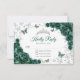 Emerald green silver floral Quinceanera RSVP reply card. Features, script font, silver butterflies, watercolor roses and tiara. Perfect for an elegant princess style glam celebration. Personalize with your own details.