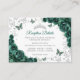 Emerald green silver Quinceanera reception details enclosure cards. Features, script font, silver butterflies, watercolor roses and tiara. Perfect for an elegant princess style glam celebration. Personalize with your own details.