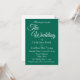 Simple style, wedding invitation that features a trendy, emerald green colour background along with the future bride and groom names and event date, time, location, and registry printed in white, stylised script. Personalise your wedding invitation by replacing info with your own. Select your invitation paper style and quantity. Designed to coordinate with our Emerald Green Simple Style Wedding collection.
