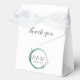 Thank your wedding event guests with a favour box with white ribbon that features a simple, emerald green colour wreath design that features the bride and groom's initials and wedding date in dark grey, stylised script. Edit your favour box to replace initials and date with your own.