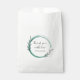 Thank your wedding attendees with this ample size, white favour bag that features a simple, emerald green colour wreath design and stylised script along with the bride and groom's first names printed in black letters. Personalise your favour bag by editing and replacing names.