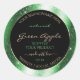 The design features a bright shimmering emerald green glitter frame with tiny sparkling stars on a plain black background.