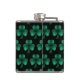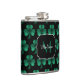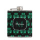 Emerald Green Sparkle Shamrock black Monogram Hip Flask