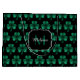 Emerald Green Sparkle Shamrock black Monogram Large Gift Bag