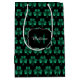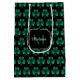 Emerald Green Sparkle Shamrock black Monogram Medium Gift Bag