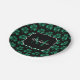 Emerald Green Sparkle Shamrock black Monogram Paper Plate