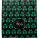 Emerald Green Sparkle Shamrock black Monogram Shower Curtain