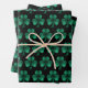 Emerald Green Sparkles Shamrock pattern black Wrapping Paper Sheet