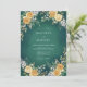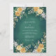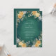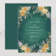 A deep emerald green background with a soft watercolor texture creates a sophisticated and atmospheric mood. Lush yellow roses are paired with delicate white blossoms and eucalyptus leaves for a rich botanical aesthetic. Ideal for a formal winter or autumn event, the palette balances bold jewel tones with warm floral accents.