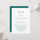 Emerald Green Teal Monogram Minimalist Wedding Inv Invitation