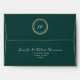 Enhance your wedding invitations with our simple yet elegant vintage emerald green 5x7 envelopes. Inside, discover delicate gold floral accents that whisper of timeless beauty. Complete with a sophisticated return address and a monogram gracing the top flap, each envelope promises a touch of refined charm for your special day.