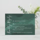 This simple and elegant RSVP card features a minimalist watercolor design with white fonts. All the colours, including the forest green and emerald green watercolor, can be changed, as the watercolor design sits on top of the coloured background. The front side showcases "Kindly Reply" in elegant script down the side, with space for your guests' responses. On the back is a simple monogram for the couple's initials. This modern and understated response enclosure card works seamlessly with any wedding theme and every season of the year. You can also change the font colours to suit your preferences. The chic, minimalist elegance of this RSVP card ensures it complements a variety of wedding themes, adding a touch of class to your special day. Simple Stylish Elegant Watercolor Green Wedding RSVP Card.