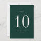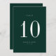Modern minimalist, emerald green and white wedding table number card. Please note that table number cards must be numbered and added to your cart individually.