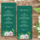 Emerald Green White Floral Wedding Menu