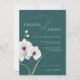 Emerald Green White Orchids Initial Floral Wedding Invitation