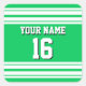 Emerald Green White Team Jersey Custom Number Name Square Sticker