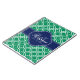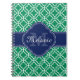 Emerald Green Wht Moroccan Pattern Navy Monogram Notebook