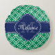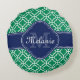 Emerald Green Wht Moroccan Pattern Navy Monogram Round Cushion