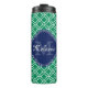 Emerald Green Wht Moroccan Pattern Navy Monogram Thermal Tumbler
