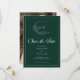 Emerald Green Wispy Crest Monogram Save the Date Invitation - Our modern rustic emerald green save the date is right on trend and is simple and elegant. Save the Date features a wispy wreath encircling a modern wedding monogram. It's personalised with modern, elegant typography and accented with beautiful calligraphy. Save the Date is part of a collection. You can easily change the background colour in the design tool to match your colour palette.