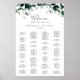 This emerald greenery alphabetical seating chart poster is perfect for a boho wedding. This sign can be used to organise your guests alphabetically or by table number by changing the names of the headings. The elegant yet rustic design features moody dark green watercolor leaves and eucalyptus with a modern bohemian woodland feel. This wedding poster includes enough room for up to about 120 guests. Make room for more (or less) guests by clicking the "customise" button and decrease or increase the size of the font. In addition to the placement of each guest, personalise this sign with the names of the bride and groom and the wedding date.