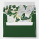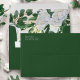 Emerald green envelopes personalised with your return address - perfect for invitations or everyday beautiful mail. The inside of the envelope is printed with beautiful peony rose flowers in full bloom with greenery and eucalyptus leaves on a cream watercolor wash. Your return address is on the back flap in white.