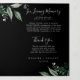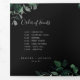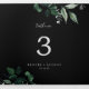 This emerald greenery black tri-fold table number sign is perfect for a boho wedding. The elegant yet rustic design features moody dark green watercolor leaves and eucalyptus with a modern bohemian woodland feel. Personalise each trifold table stand with the table number, order of events, in loving memory, a thank you message, the names of the couple and the wedding date. Makes the perfect stylish alternative to standard table numbers.