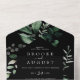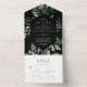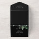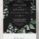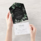 This emerald greenery black wedding all in one invitation is perfect for a boho wedding. The elegant yet rustic design features moody dark green watercolor leaves and eucalyptus with a modern bohemian woodland feel. Hand write your guest addresses on the back of the folded invitation, or purchase the coordinating guest address label stickers (sold separately).