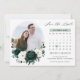 Elegant Emerald green greenery & ivory white floral botanical photo calendar save the date card featuring white roses and elegant green watercolor eucalyptus leaves . Please contact me for any help in customisation or if you need any other product with this design.