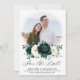 Elegant Emerald green greenery & ivory white floral botanical wedding save the date card featuring white roses and elegant green watercolor eucalyptus leaves . Please contact me for any help in customisation or if you need any other product with this design.