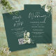 This elegant emerald green botanical greenery leaves wedding invitation can be personalised with your information in chic typography with your wedding website details and your QR code on the reverse. Designed by Thisisnotme©