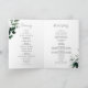 This emerald greenery folded wedding program is perfect for a boho wedding. The elegant yet rustic design features moody dark green watercolor leaves and eucalyptus with a modern bohemian woodland feel.