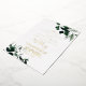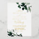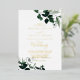 This emerald greenery gold foil wedding invitation card is perfect for a boho wedding. The elegant yet rustic design features moody dark green watercolor leaves and eucalyptus with a modern bohemian woodland feel. Featuring luxurious gold foil text.