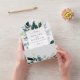 Emerald Greenery Woodland Leaf Wedding All In One All in One Invitation. Beautiful modern minimalist wedding invitation featuring hand painted watercolor foliage with gold leaves and modern calligraphy script. Botanical all in one wedding invitation. This emerald green woodland wedding all in one invitation is designed with an easy to tear off perforated RSVP postcard. Simply fold the card, seal and send (no envelope needed). You can personalise the wording, font style, colour and size in front and back of the invitation. Please fell free to contact me for matching items.