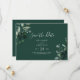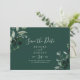 This emerald greenery green horizontal save the date card is perfect for a boho wedding. The elegant yet rustic design features moody dark green watercolor leaves and eucalyptus with a modern bohemian woodland feel.