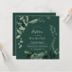 This emerald greenery green square baptism invitation is perfect for a boho baby baptism. The elegant yet rustic design features moody dark green watercolor leaves and eucalyptus with a modern bohemian woodland feel.